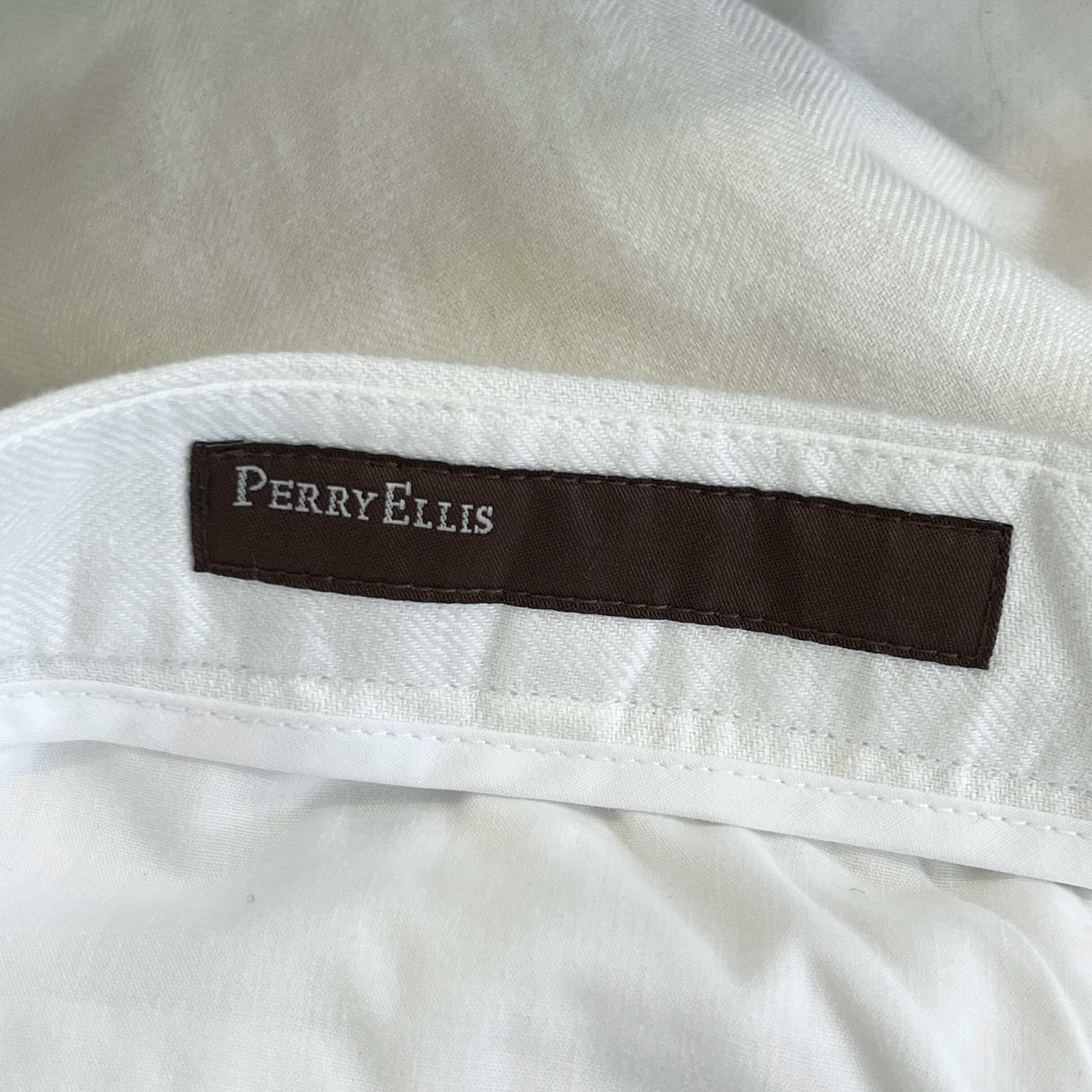 PERRY ELLIS White linen blend trousers