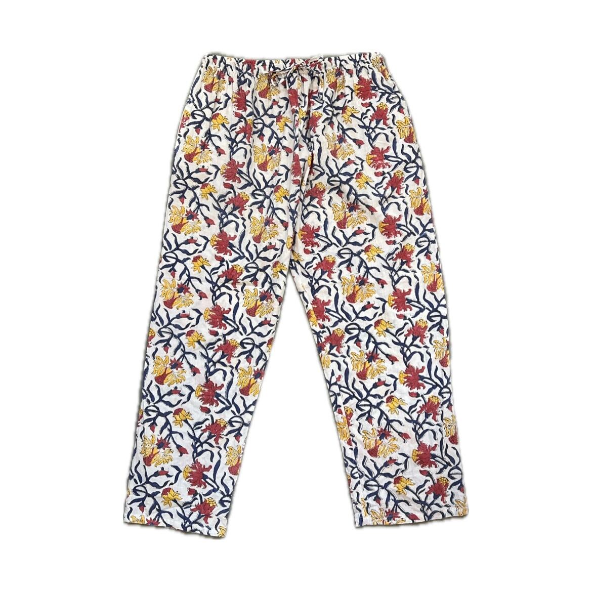 Dead stock India Hand block print easy pants(White)