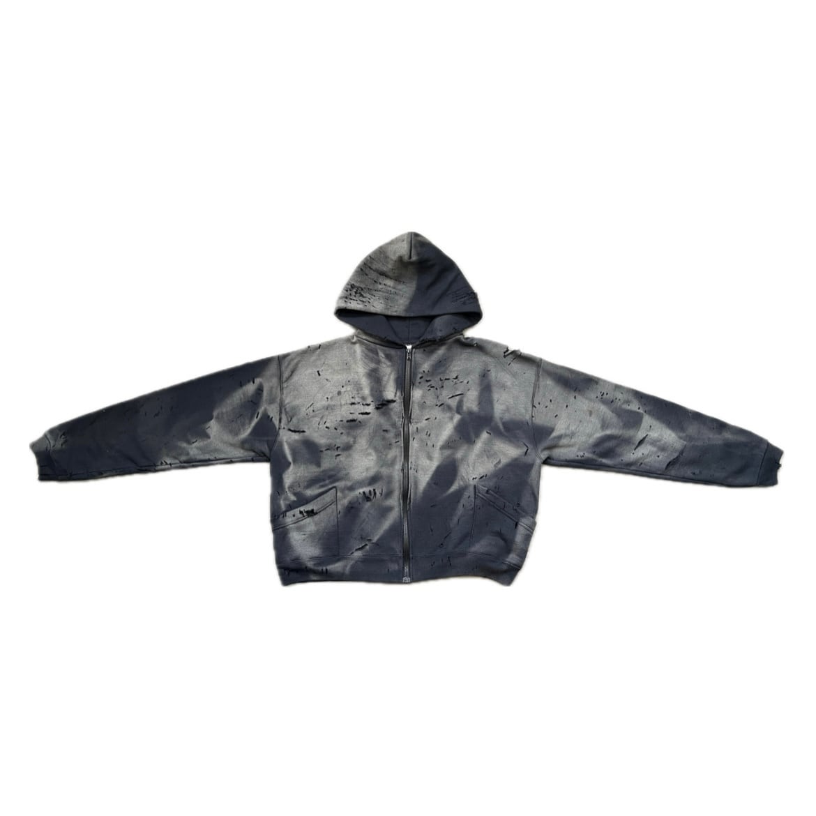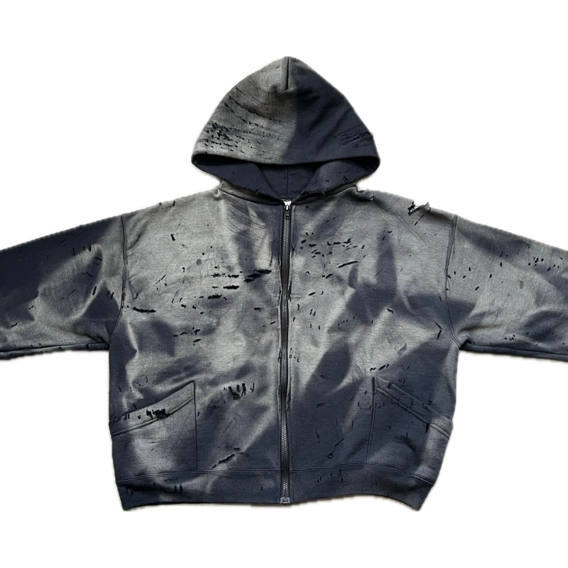 Old Black sweat full zip parka separate patch pockets hard distressed sun faded