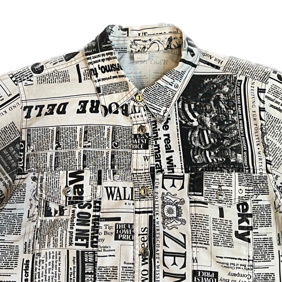 News paper pattern cotton trucker jacket made in USA